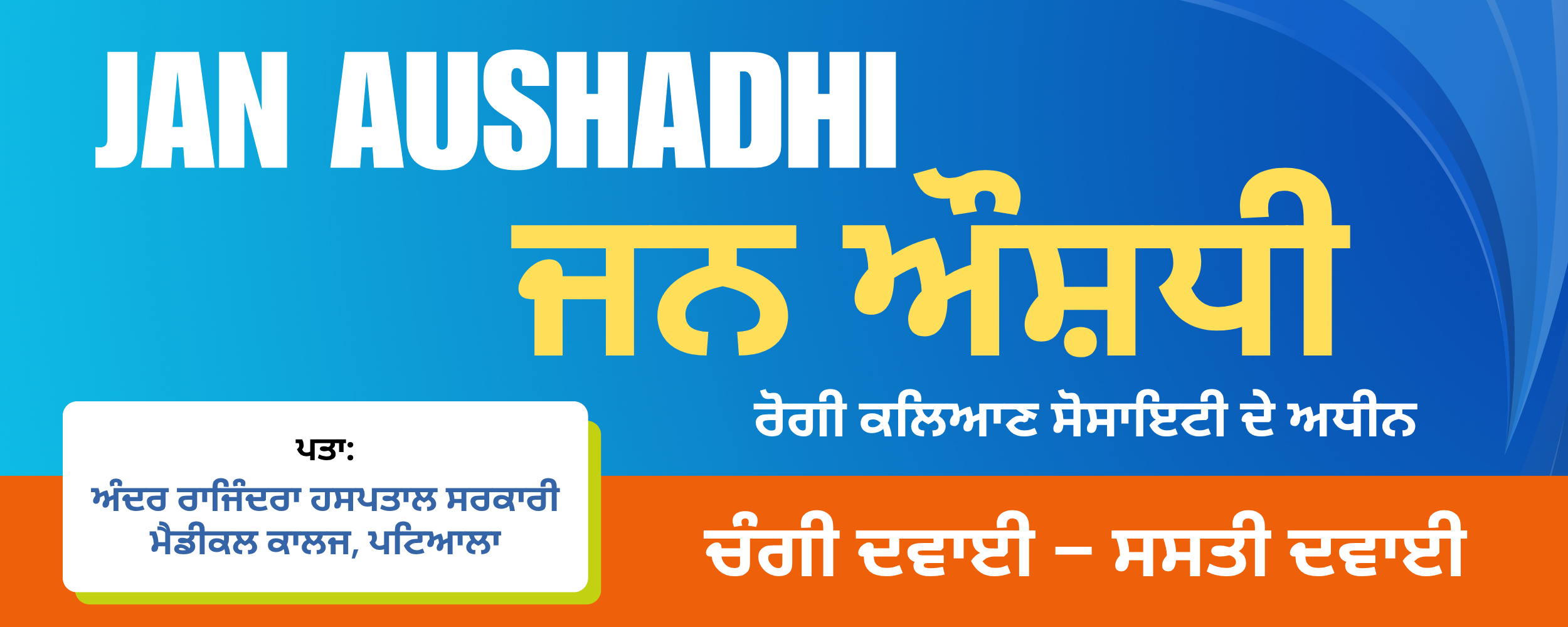 In Govt. Medical College, Patiala /Rajindra Hospital Patiala, Jan Aushadhi Store was opened under aegis of Rogi Kalyan Society(RKS) in 2015 with aim to provide all essential medicines and surgical items to patients at affordable prices.